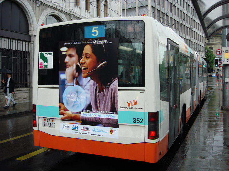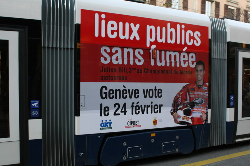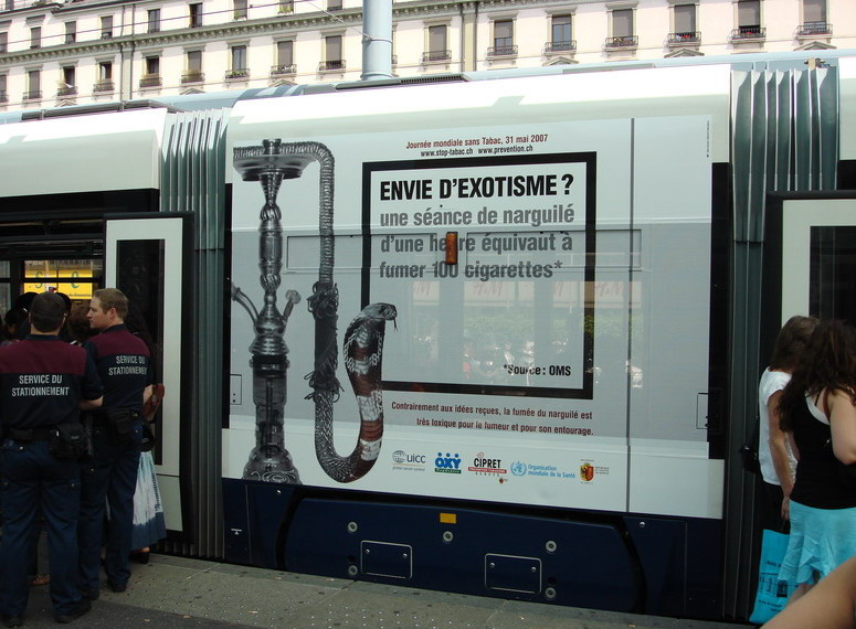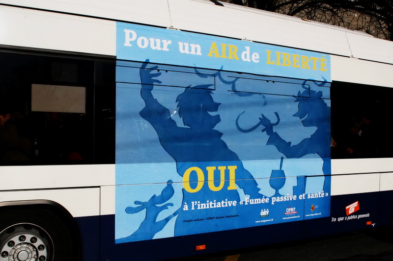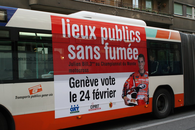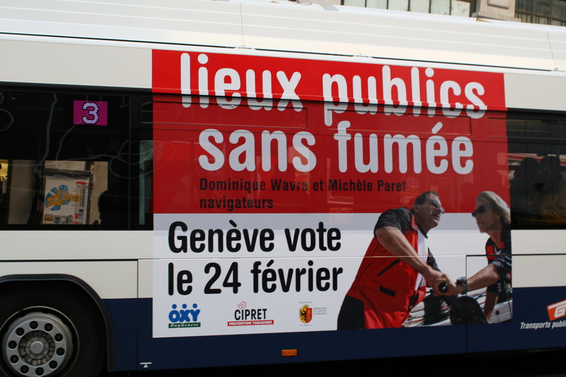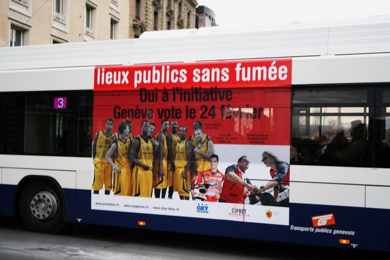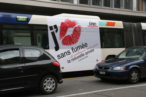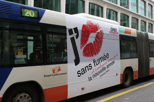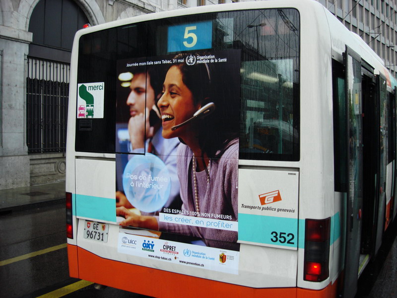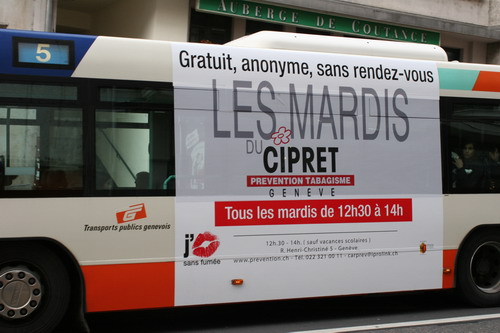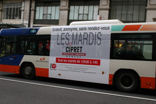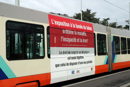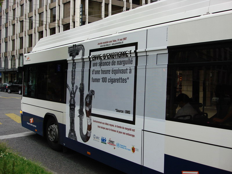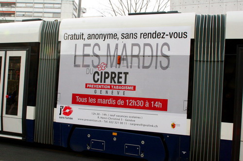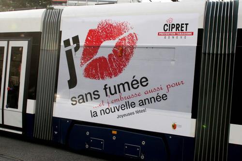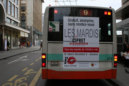 Campagne 28 mai au 10 juin 2007 Journée mondiale sans tabac 31 mai "OMS" 10 bus (arrière) "Narguilé" 10 bus (côté) - 5 trams City-Runner avec 5 x 2 affiches Campagne du 27 novembre 2006 au 21 janvier 2007 9 bus (côté) -3 trams (côté) - 2 trams City-Runner avec 2 x 2 affiches Campagne du 27 novembre au 24 décembre 2006 15 Bus (arrière-bus) |