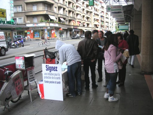 Journée mondiale sans tabac - Place du Molard - Genève - Stand Récolte de signatures pour l'Initiative