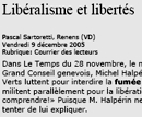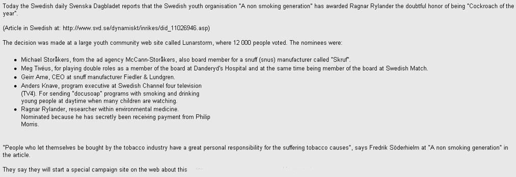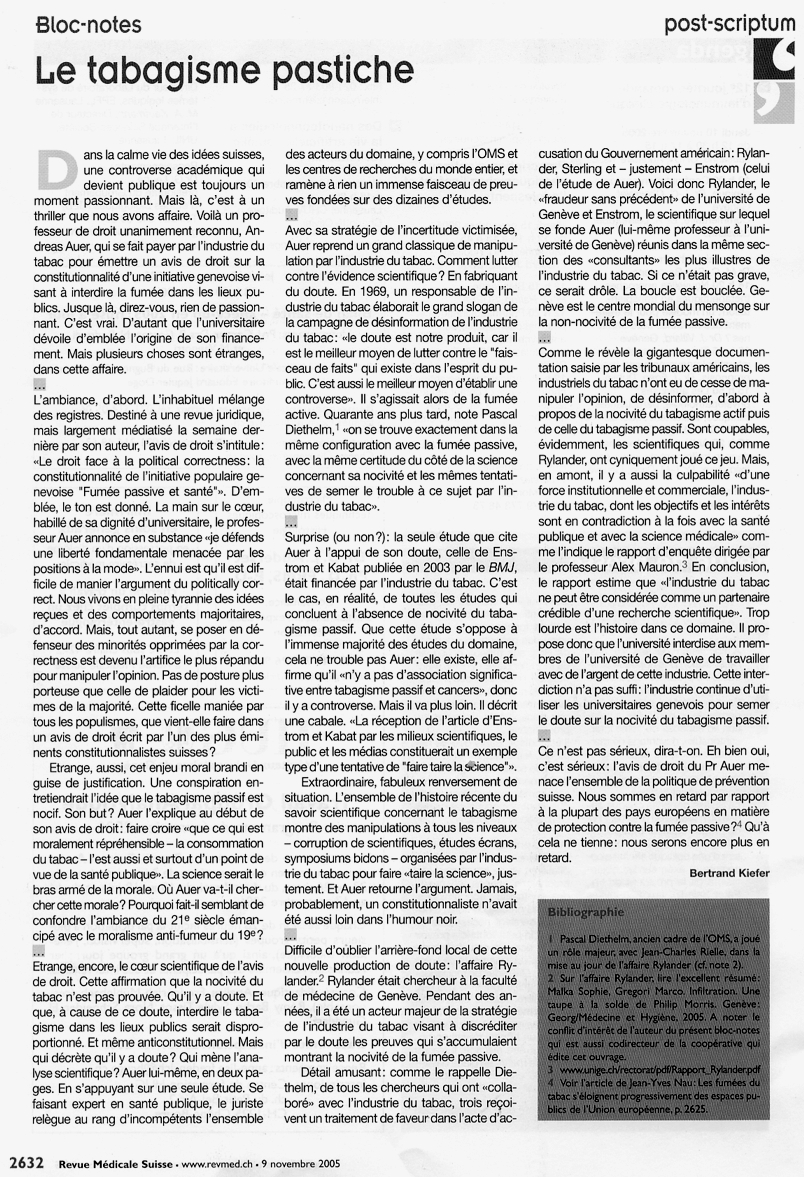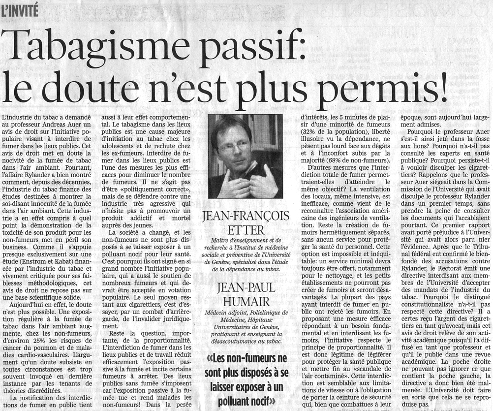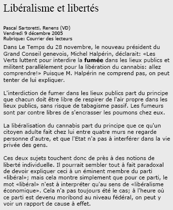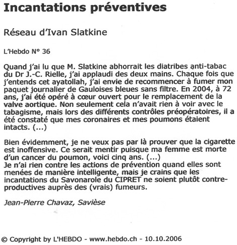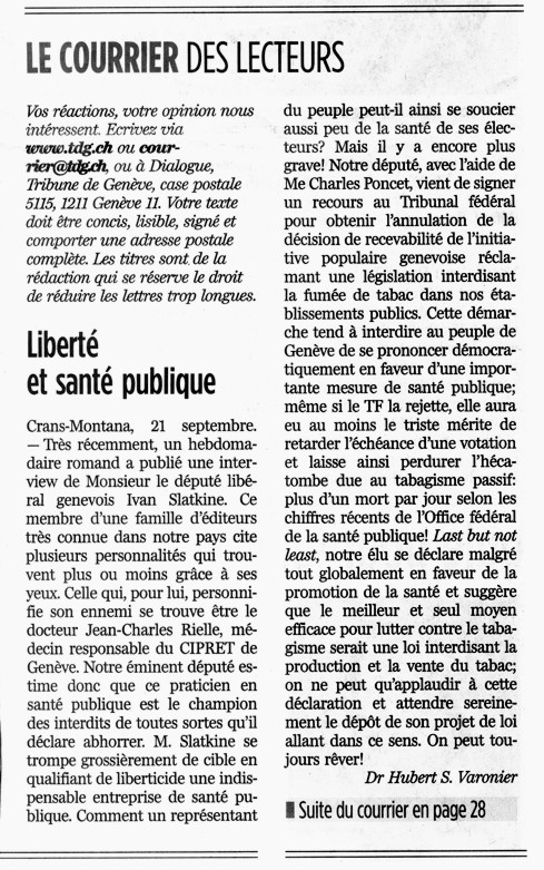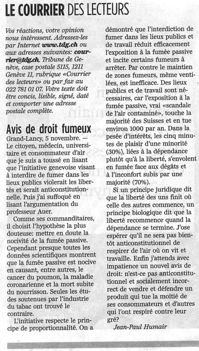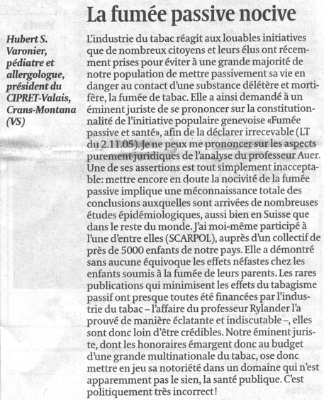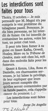 Lettre de lecteur de Ragnar Rylander - Tribune de Genève 17-18 déc. 2005