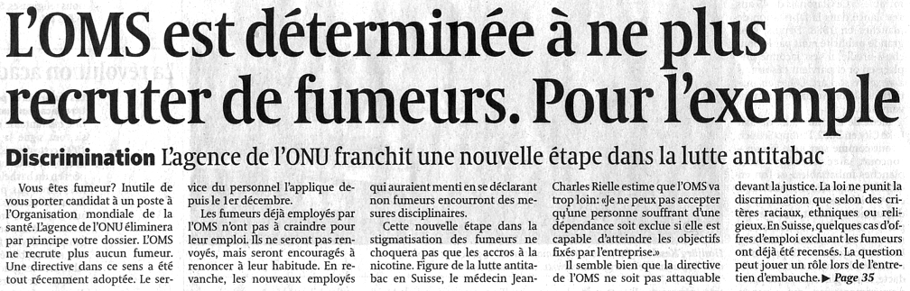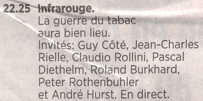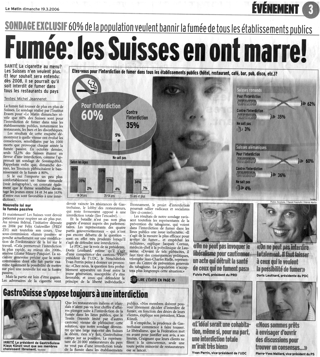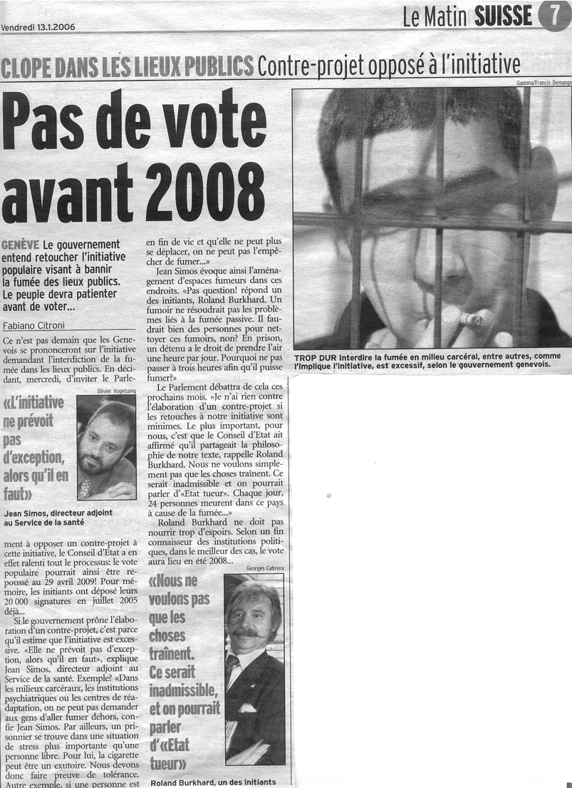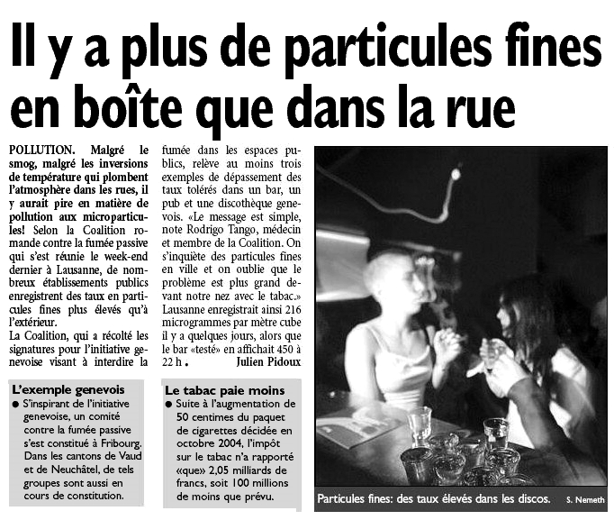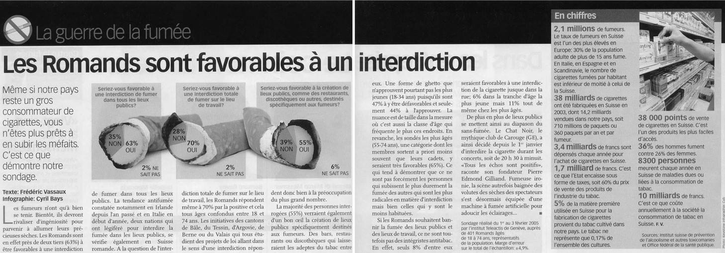 Mise au Point online TSR1 - dim. 8 janv. 2006 - 20h TSR2 - lundi 9 janv. - 14h05 et mardi 10 janv. - 10h40 Suisse et Tabagisme |
