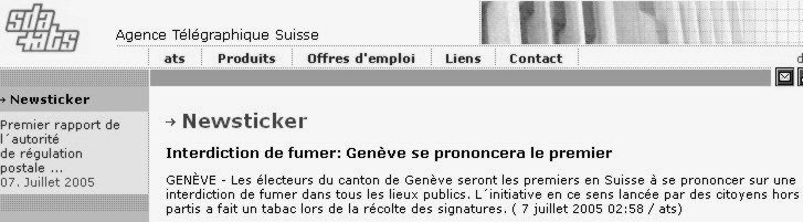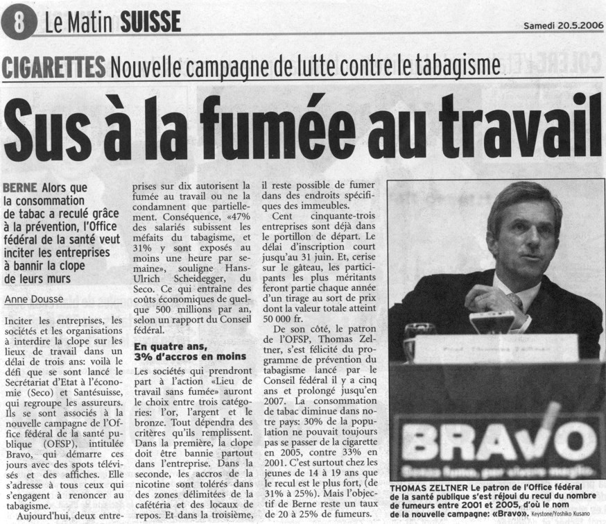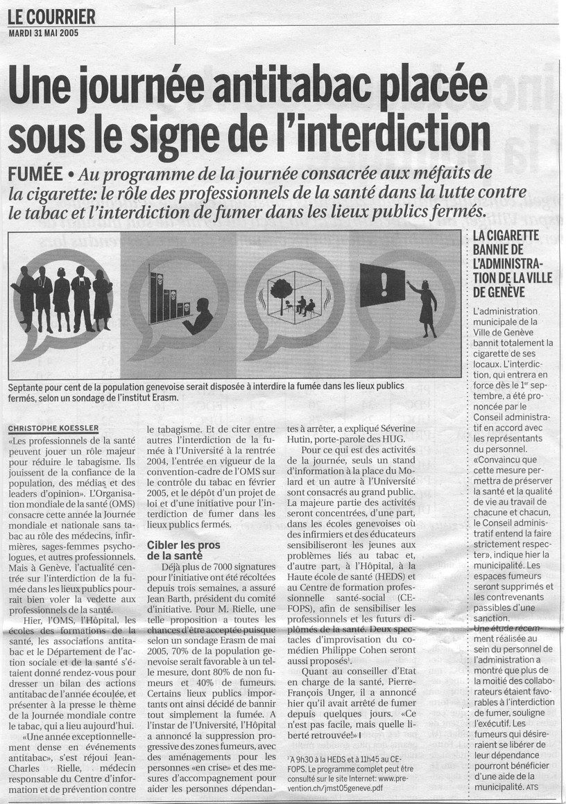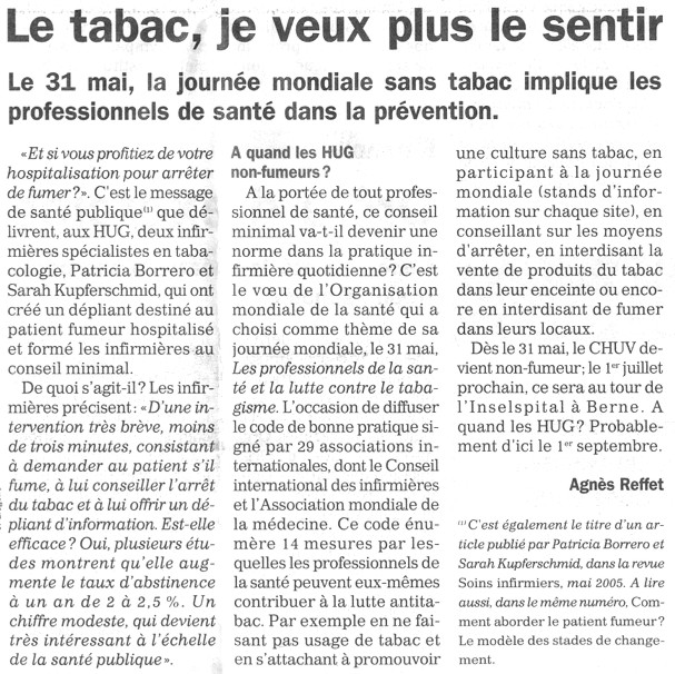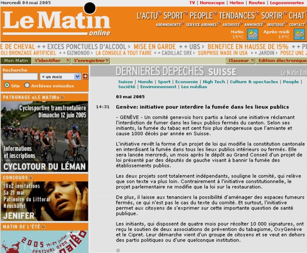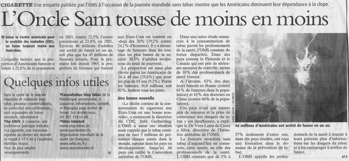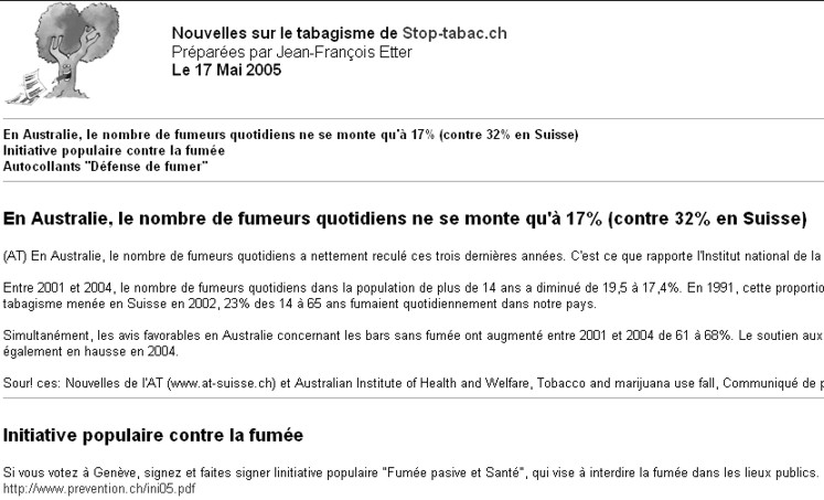 Nouvelles de Stop-tabac.ch 17 mai 2005