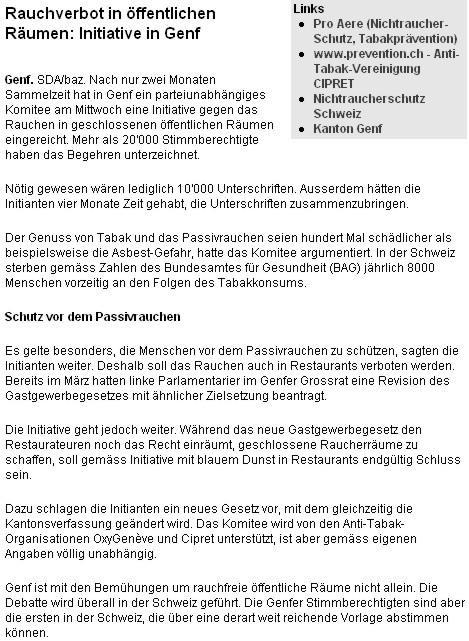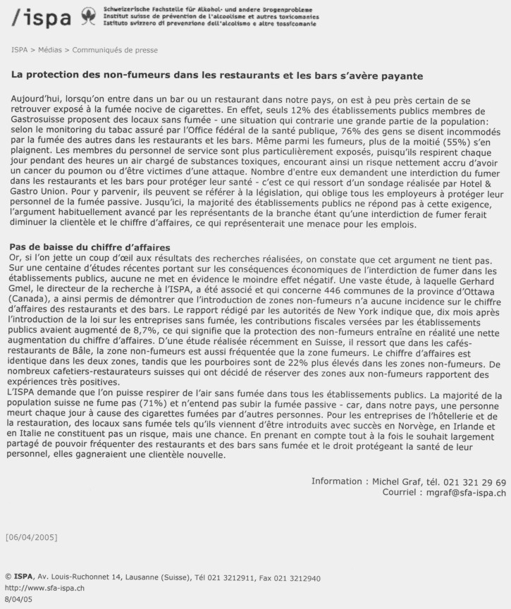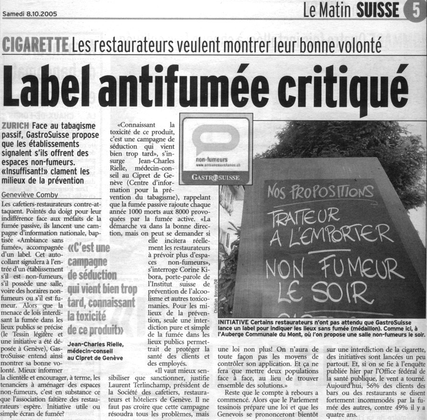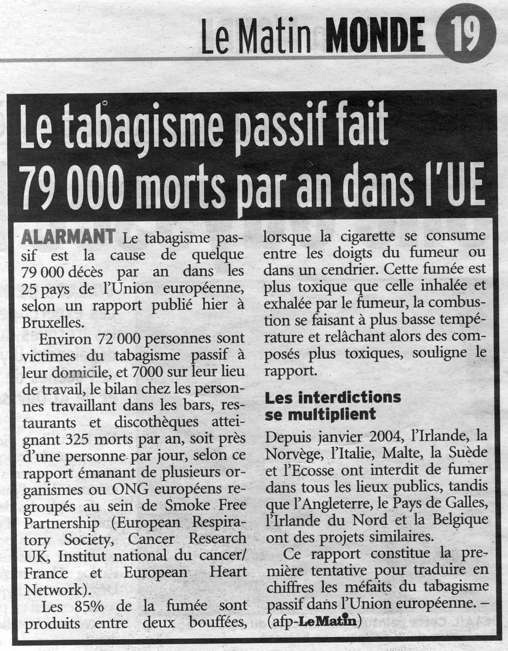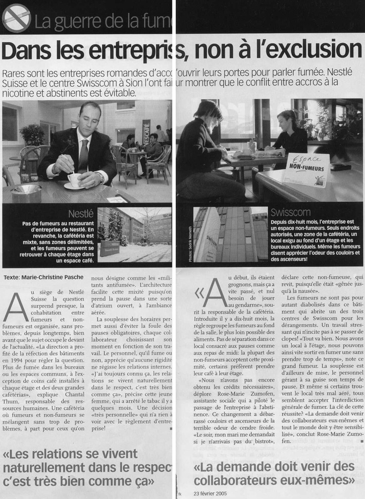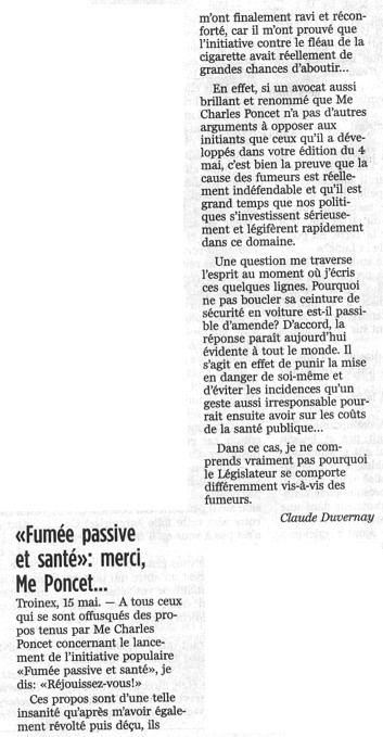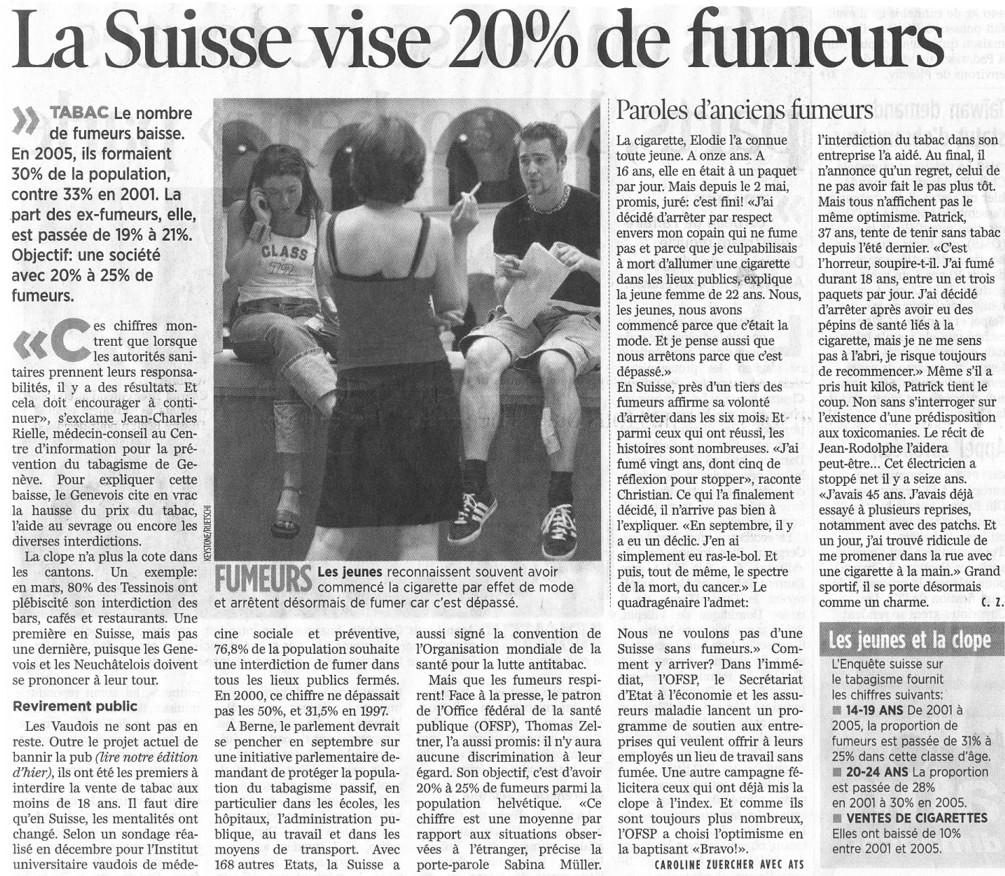 Nouvelles de Stop-tabac.ch 17 mai 2005