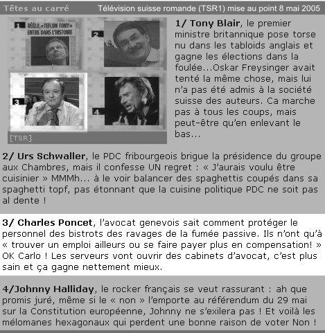 Télévision suisse romande (TSR1) mise au point 8 mai 2005