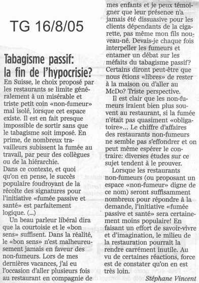Tribune de Genève 16 août 2005