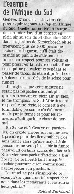 Tribune de Genève 26 janvier 2006