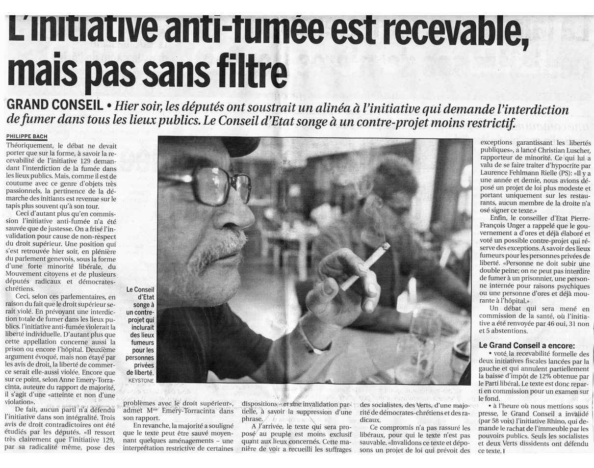 Lettre du Groupe des Pneumologues genevois au Grand Conseil