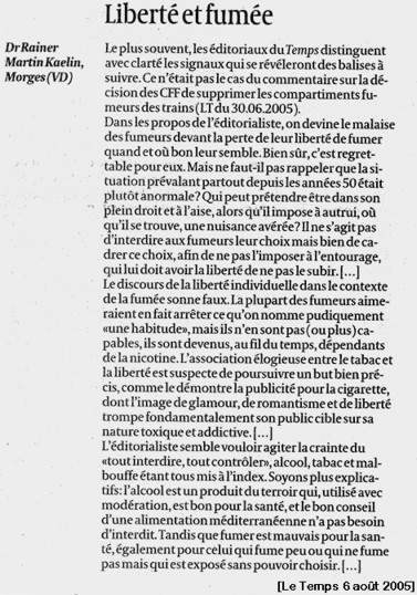 Le Temps 6 août 2005