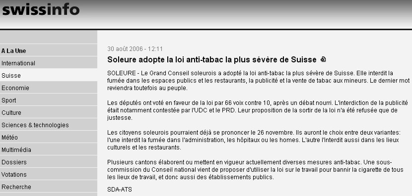SwissInfo 30 août 2006