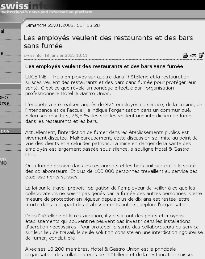 Swissinfo 18 janvier 2005
