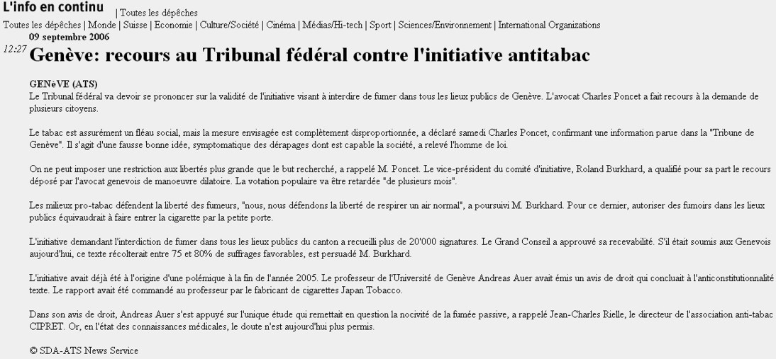 Tribune de Genève 13 septembre 2006