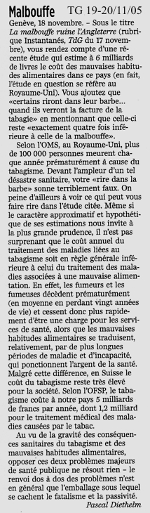 Tribune de Genève 2 nov. 2005