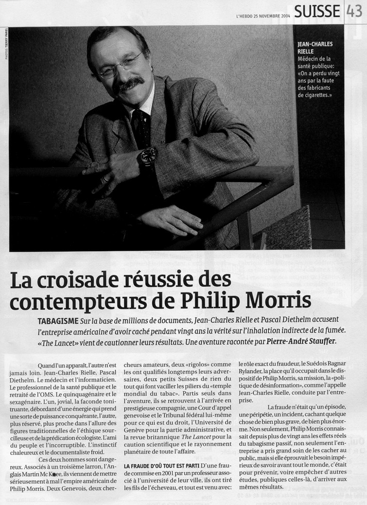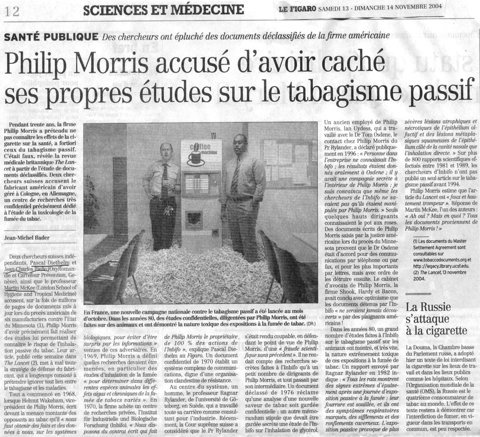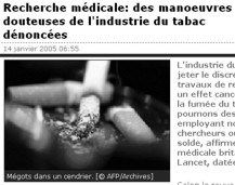 Tous les documents de la Justice américaine concernant les cigarettiers Philip Morris Incorporated Document Site R.J. Reynolds Tobacco Company Document Site Brown & Williamson Document Site Lorillard Tobacco Company Document Site The Tobacco Institute Document Site The Council for Tobacco Research Document Site sont consultables à partir du site