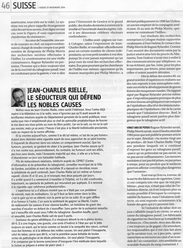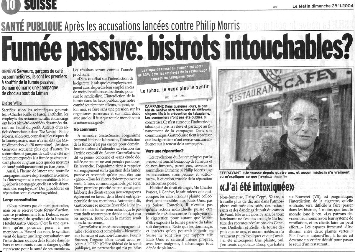 Radio suisse romande (RSR) 11 novembre 2004 Télévision suisse romande (TSR1) Téléjournal 21 novembre 2004 - 12.45 Le Temps - Suisse - 22 novembre 2004