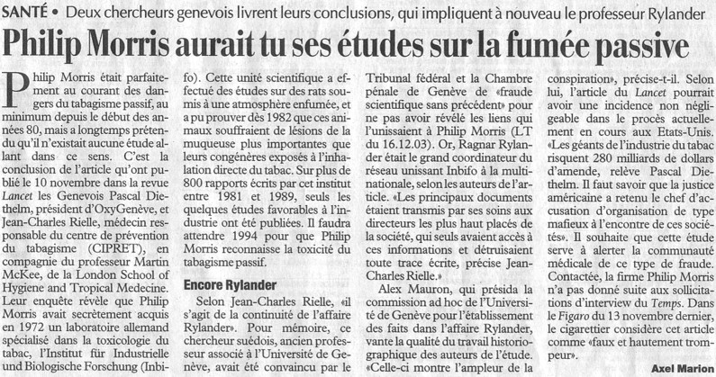 Le Matin - Suisse - 21 novembre 2004