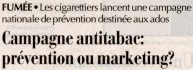 et les adresses utiles sur www.stop-tabac.ch ![]() - Tobacco Control Archives - The Brown & Williamson Collection - Andrews' Publications: Tobacco Industry Litigation Reporter - Tobacco on Trial: The Newsletter of the Tobacco Control Movement -Les compagnies de tabac et la Chine La Chine est un marché énorme: 70% des hommes fument! Des documents internes des compagnies internationales de tabac, révélés sur tobaccoarchives.com, montrent que ces compagnies sont intervenues en Chine pour empêcher la législation anti-tabac, pour saboter les actions anti- tabac et subvertir le débat tabac+santé. Source: Tobacco Control 2000;9:292. -Rapport OMS sur les manipulations de l'industrie du tabac L'OMS vient de publier un rapport explosif sur les manipulations de l'industrie du tabac, destinées à saper les efforts de l'OMS. Disponible sur: http://filestore.who.int/~who/home/tobacco/tobacco.pdf -Globalink: le réseau mondial antitabac: www.globalink.org Juge suisse accusé Le juge tessinois Franco Verda a été accusé d'avoir transmis des informations confidentielles à un chef mafieux impliqué dans une contrebande massive de cigarettes, portant sur les millions de francs. Dépenses de prévention La Confédération Suisse consacre 2,5 millions de francs par année pour la prévention du tabagisme (8'000 morts/an), soit à peine plus d'un franc par fumeur, 12 millions pour la prévention du Sida (80 morts/an), et 12 millions pour la prévention des toxicomanies (200 morts/an). En Suisse, les compagnies de cigarettes dépensent plus de 100 millions par an pour promouvoir un produit qui est mortel une fois sur 2 si on l'utilise selon les recommandations du fabricant. Augmentation de la mortalité Un fait dont presque personne n'a pris conscience: en Europe, la mortalité attribuable au tabagisme va exploser dans les prochaines années. Etant donné que les décès attribuables au tabagisme qui interviendront dans les 30 prochaines années interviendront chez des personnes qui fument DEJA aujourd'hui, on peut calculer qu'en France, on passera de 60'000 décès prématurés causés annuellement par le tabagisme à 160'000 décès en 2'020. Chez les femmes, on assistera à un décuplement de la mortalité attribuable au tabagisme (de 5'000 décès prématurés aujourd'hui à 50'000 dècès en 2'020). Epidémie Chaques jour, 11'000 personnes dans le monde décèdent prématurément d'une maladie causée par le tabagisme, ce chiffre augmente rapidement. En 2020, 10 millions de personnes mourront du tabagisme chaque année (contre 3 millions aujourd'hui), dont 70% dans les pays en développement. Les compagnies américaines de tabac commercialisent agressivement leurs produits dans les pays en développement. Documents secrets Des milliers de documents internes de l'industrie du tabac ont été publiés. Beaucoup de ces documents étaient secrets. Ils ont permis aux tribunaux américains de condamner l'industrie du tabac à des milliardsa de dollars de dommages, pour avoir caché la vérité et trompé les fumeurs et le public. Un livre publie une synthèse de ces documents: Glantz SA, Slade J, et al. The cigarette papers. Berkeley, Los Angeles, London: University of California Press, 1996. Shoot Les fabricants de cigarettes ajoutent de l'ammoniac au tabac pour accélérer l'absorption de la nicotine (freebase) et augmenter ainsi la dépendance des fumeurs. Les cigarettes sont des produits industriels sophistiqués destinés à fournir aux fumeurs la dose de nicotine jugée "optimale" par les fabricants pour engendrer et maintenir la dépendance. Les cigarettes sont étudiées pour administrer un "shoot" de nicotine. Tabagisme passif: immixtion de l'industrie du tabac dans la recherche de l'OMS Dans The Lancet, qui paraît le 8 avril 2000, des chercheurs de l'Université de Californie à San Francisco font état des résultats de l'examen de documents internes de Philip Morris et d'autres multinationales du tabac. Ces documents prouvent que l'industrie du tabac a étroitement surveillé et a tenté d'influencer activement le cours d'une étude épidémiologique internationale portant sur le cancer du poumon chez les non-fumeurs après exposition passive à la fumée du tabac. Cette étude était coordonnée par le Centre international de Recherche sur le Cancer (CIRC) à Lyon (France), un institut de recherche de l'Organisation mondiale de la Santé (OMS). Parmi les actions entreprises par l'industrie du tabac, on retiendra la mise en place d'un groupe d'action pour réagir à la publication de ces résultats, le recrutement de consultants dont la mission était de contacter les chercheurs du CIRC pour obtenir d'eux des informations confidentielles sur l'étude, et des projets visant à influencer la politique scientifique et le financement du CIRC. Il y a deux ans, l'étude du CIRC a fait l'objet d'une campagne de dénigrement dans les médias, orchestrée par l'industrie du tabac, par le biais d'un article de fond du Daily Telegraph (Londres). Bien que ces attaques n'aient pas empêché la publication du fameux rapport dans la littérature médicale, elles ont créé la confusion et ont fait naître une controverse sur l'interprétation des résultats. Les documents passés en revue dans l'article du Lancet laissent penser que cette campagne médiatique faisait partie intégrante d'une stratégie plus large et à long terme de l'industrie du tabac concernant le tabagisme passif. (Source: CIRC). Additifs: l'ammoniac dope les ventes de cigarettes Un document de ASH montre comment les ventes de cigarettes Marlboro ont augmenté en même temps que de l'ammoniac était ajouté à ces cigarettes. L'ammoniac accélère l'absorption de la nicotine, ce qui augmente la "satisfaction" et la dépendance des fumeurs. (www.ash.org.uk/papers/additives.html) Additifs du tabac: cacao Les fabricants de cigarettes ajoutent du cacao au tabac pour rendre la fumée plus facile à inhaler. Cela rend les cigarettes pl