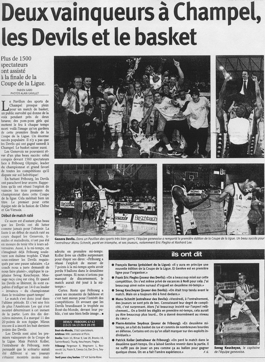 Bravo aux Geneva Devils qui gagnent la 1ère Coupe de la Ligue 2004, face à Fribourg !