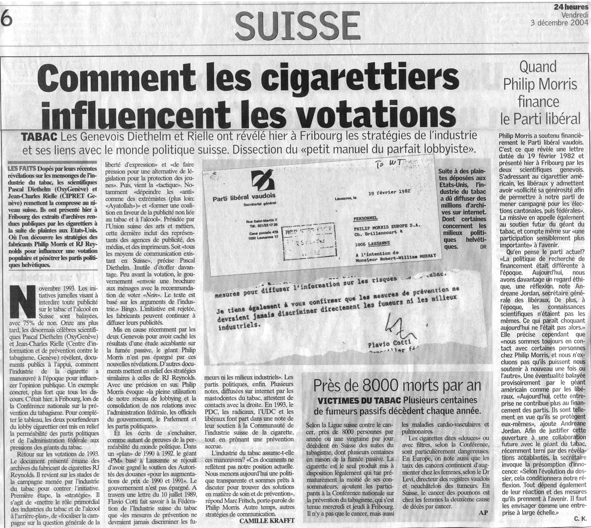 Tous les documents de la Justice américaine concernant les cigarettiers Philip Morris Incorporated Document Site R.J. Reynolds Tobacco Company Document Site Brown & Williamson Document Site Lorillard Tobacco Company Document Site The Tobacco Institute Document Site The Council for Tobacco Research Document Site sont consultables à partir du site |