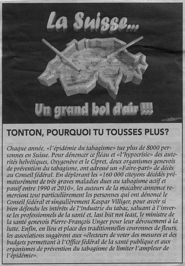 - SUISSE - La santé publique sacrifiée à la politique fiscale