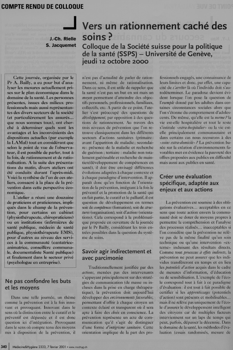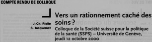 - Médecine&Hygiène 7 février 2001 - Vers un rationnement caché des soins?