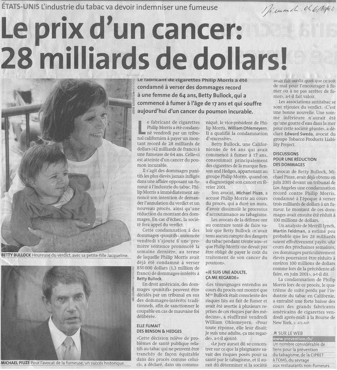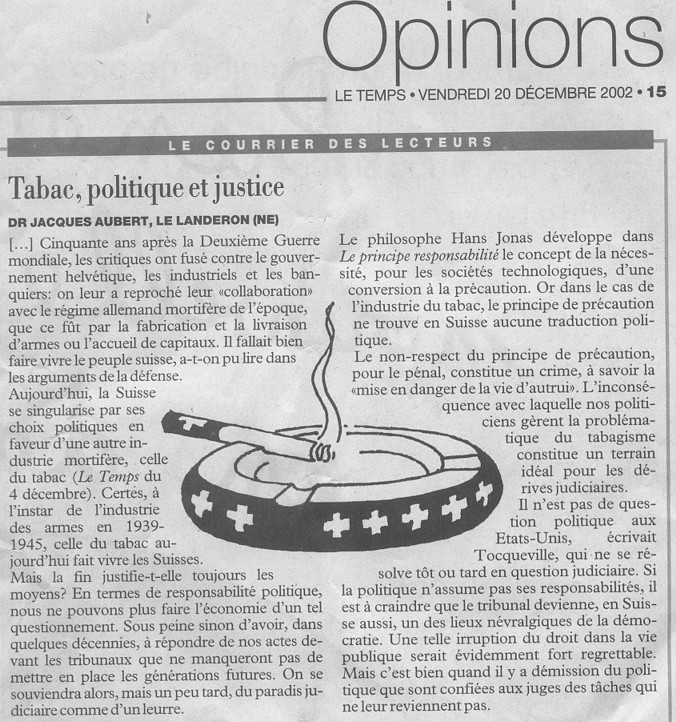 Nous allons examiner l'arrêt de manière approfondie avec nos avocats et nous nous proposons de faire trancher par le Tribunal fédéral la question de savoir si une sanction, même aussi insignifiante qu'une amende, doit vraiment nous être infligée alors que nous n'avons fait qu'attirer l'attention de la communauté scientifique, de l'Université et de l'opinion publique sur les financements occultes par l'industrie du tabac des travaux de scientifiques complaisants.