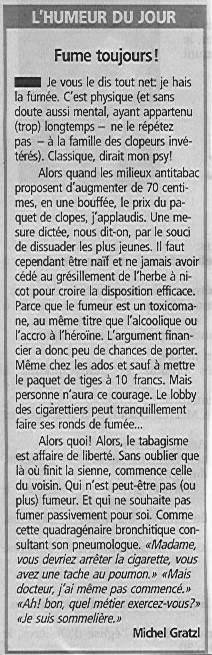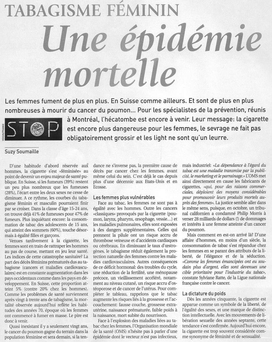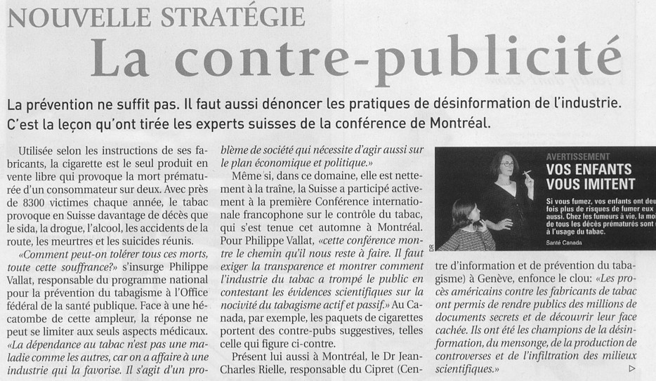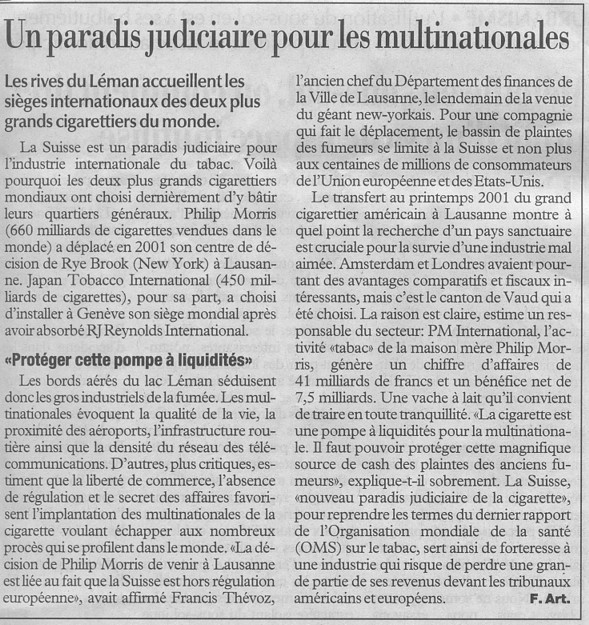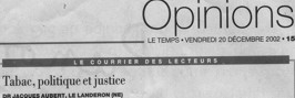 La Cour d'appel a rendu son arrêt lundi 13 janvier 2003. Nous notons que l'amende qui nous avait été infligée par le Tribunal de police a été réduite considérablement (de 4000 francs elle passe à 1000 francs). Par ailleurs, M. Rylander avait été débouté de toutes ses conclusions en dommages intérêts contre nous par le Tribunal de police et nous sommes heureux de constater que cet aspect de la décision a été confirmé, car le montant considérable qu'il nous réclamait (plus de 60'000