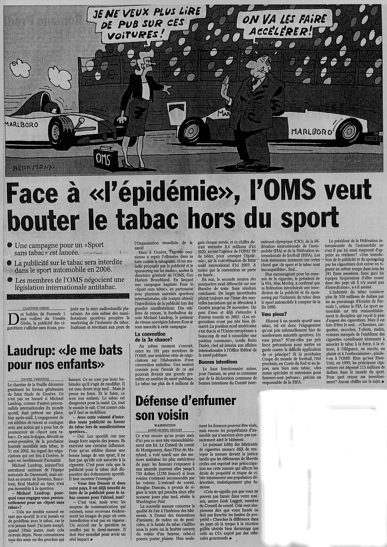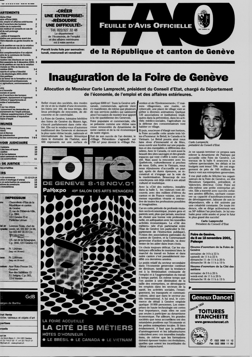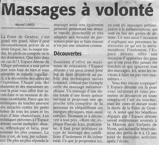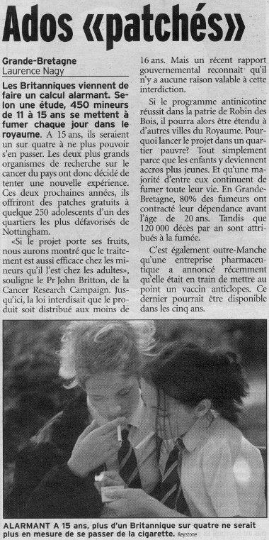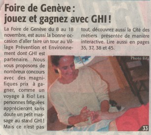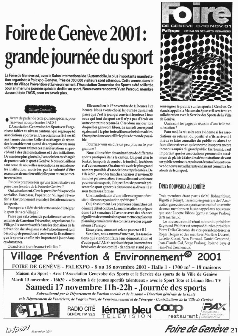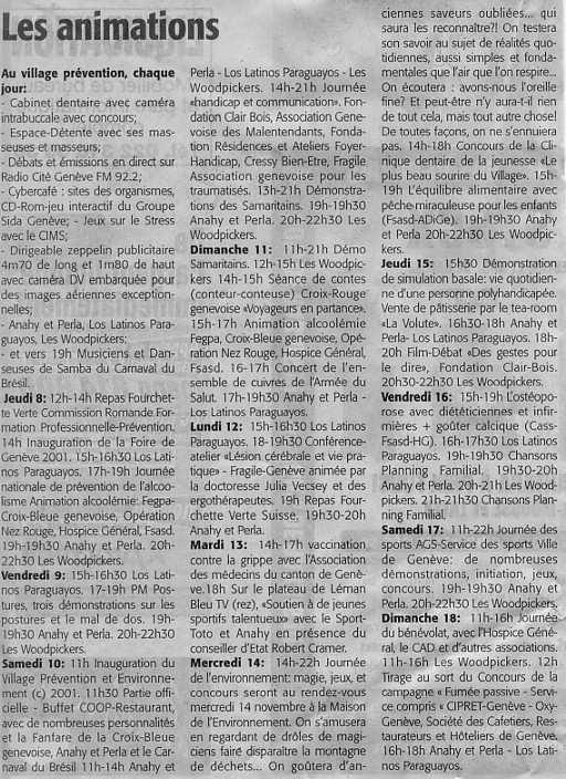 Tribune de Genève 9 novembre 2001 - Sponsoring CIPRET-Genève et FEGPA