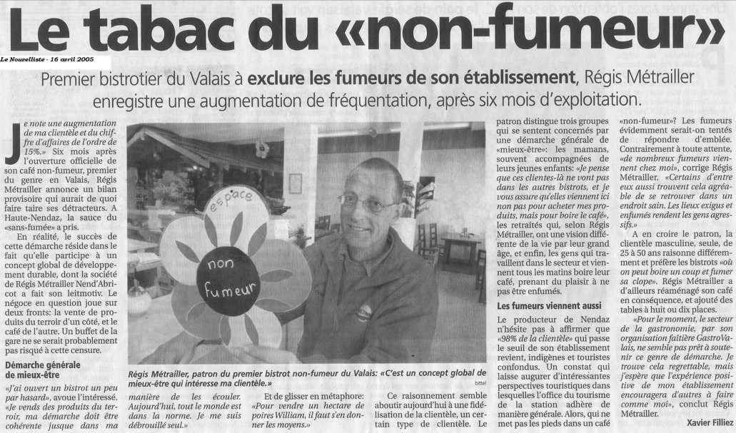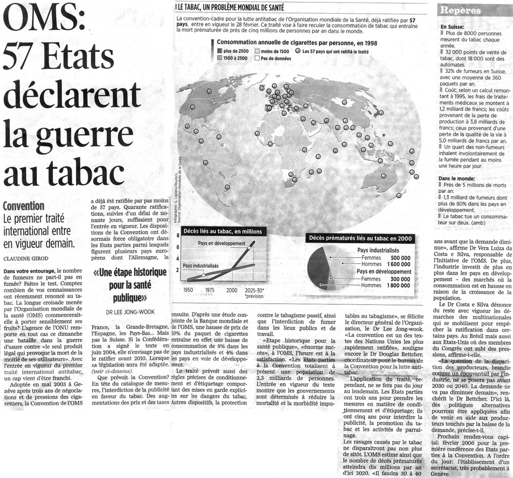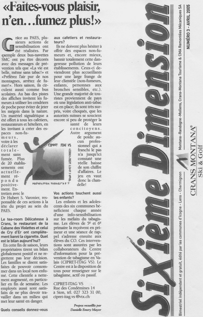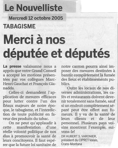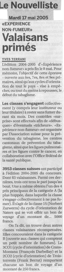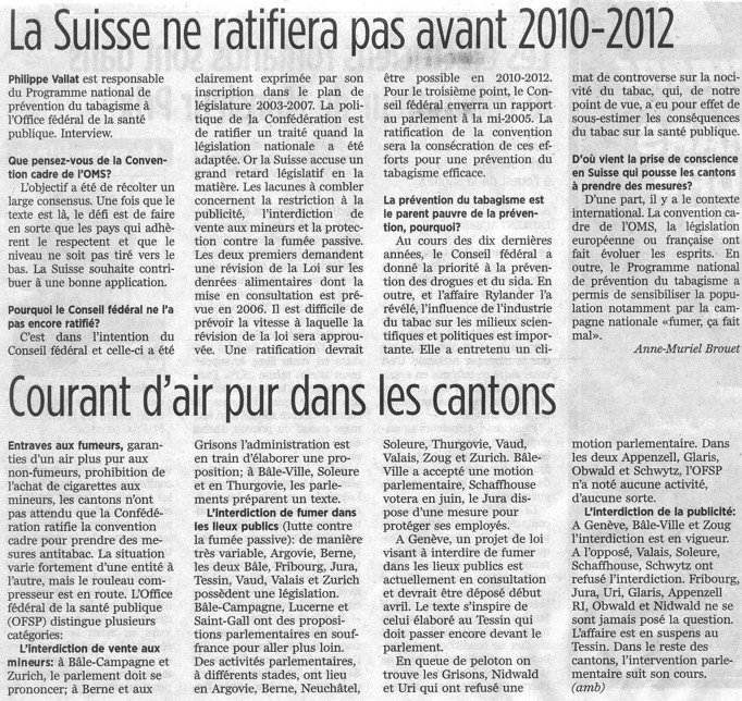 Nouvelles de Stop-tabac.ch 17 mai 2005