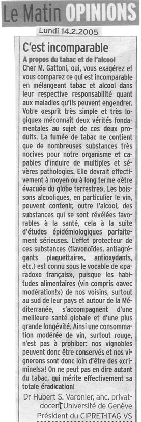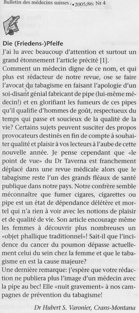 Courrier lecteur Dr Hubert S. Varonier - Bulletin des médecins suisses - BMS 2005;86:Nr4