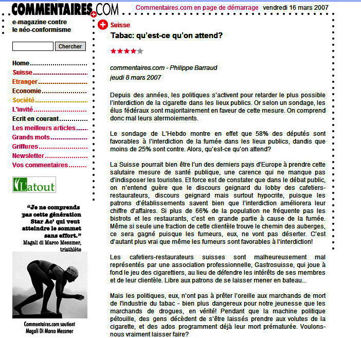 Commentaires.com 8 mars 2007