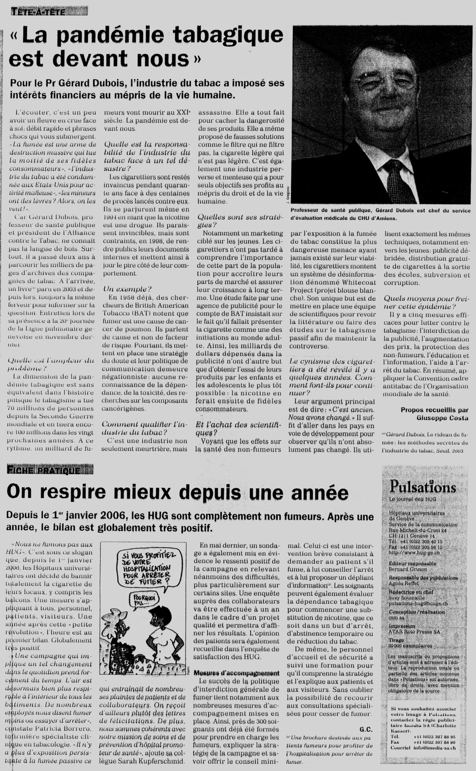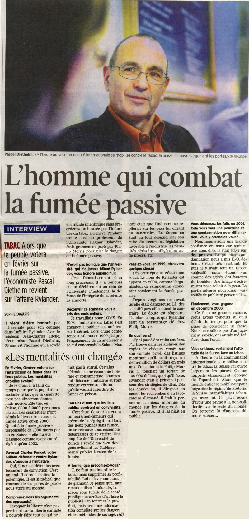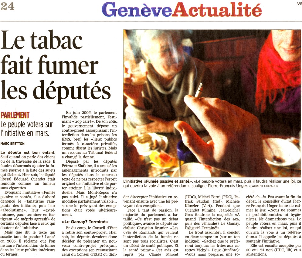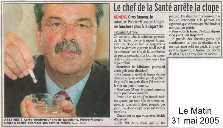 Il y a 2 ans, lors du 31 mai 2005, le ministre genevois de la santé Pierre-François Unger avait cessé de fumer. 2 ans plus tard, il a tenu!