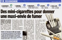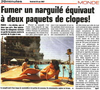« Fumer la "chicha" est dangereux pour la santé » titre LA CROIX qui parle d'une « explosion » de cette consommation chez les jeunes. Le journal qui explique le mode de fonctionnement du narguilé ou chicha, précise qu'au 1er janvier 2008, les bars à chicha devront respecter la loi antitabac, mais que cela ne freinera pas la consommation des jeunes car un grand nombre d'entre eux achètent déjà leur propre pipe à eau pour fumer chez eux. Reprenant les chiffres de l'enquête de Paris sans tabac, le journal souligne que pour le ministère de la santé, l'usage de la chicha représente « un risque sanitaire sérieux ». Expliquant que de nombreux consommateurs croient pourtant que cette pratique est moins risquée que la cigarette, car ils estiment que les particules nocives sont filtrées par l'eau, le quotidien observe que selon les spécialistes, ce passage par l'eau n'élimine ni les métaux lourds, ni divers carcinogènes et surtout pas le monoxyde de carbone. Conclusion sur deux hospitalisations récentes « pour une grave intoxication au monoxyde de carbone », signalées par le Pr Dautzenberg « celle d'une étudiante qui avait fumé trois chichas (...) et d'une femme qui ne fumait pas mais préparait simplement des chichas ».