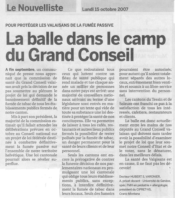 Le Nouvelliste 15 octobre 2007