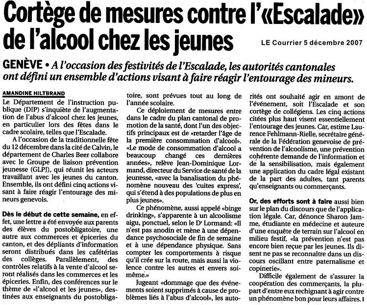 Tribune de Genève 5 décembre 2007