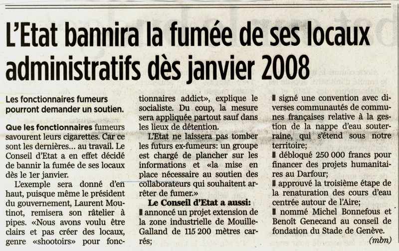 Tribune de Genève 19 décembre 2007