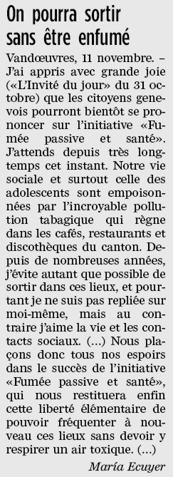 Tribune de Genève 15 novembre 2007