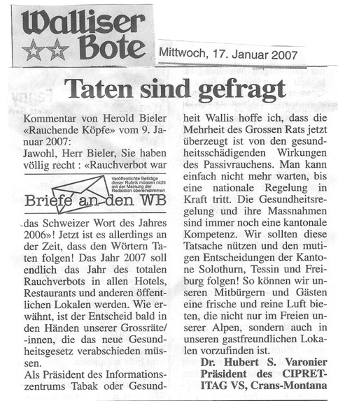 Walliser Bote 17 janvier 2007