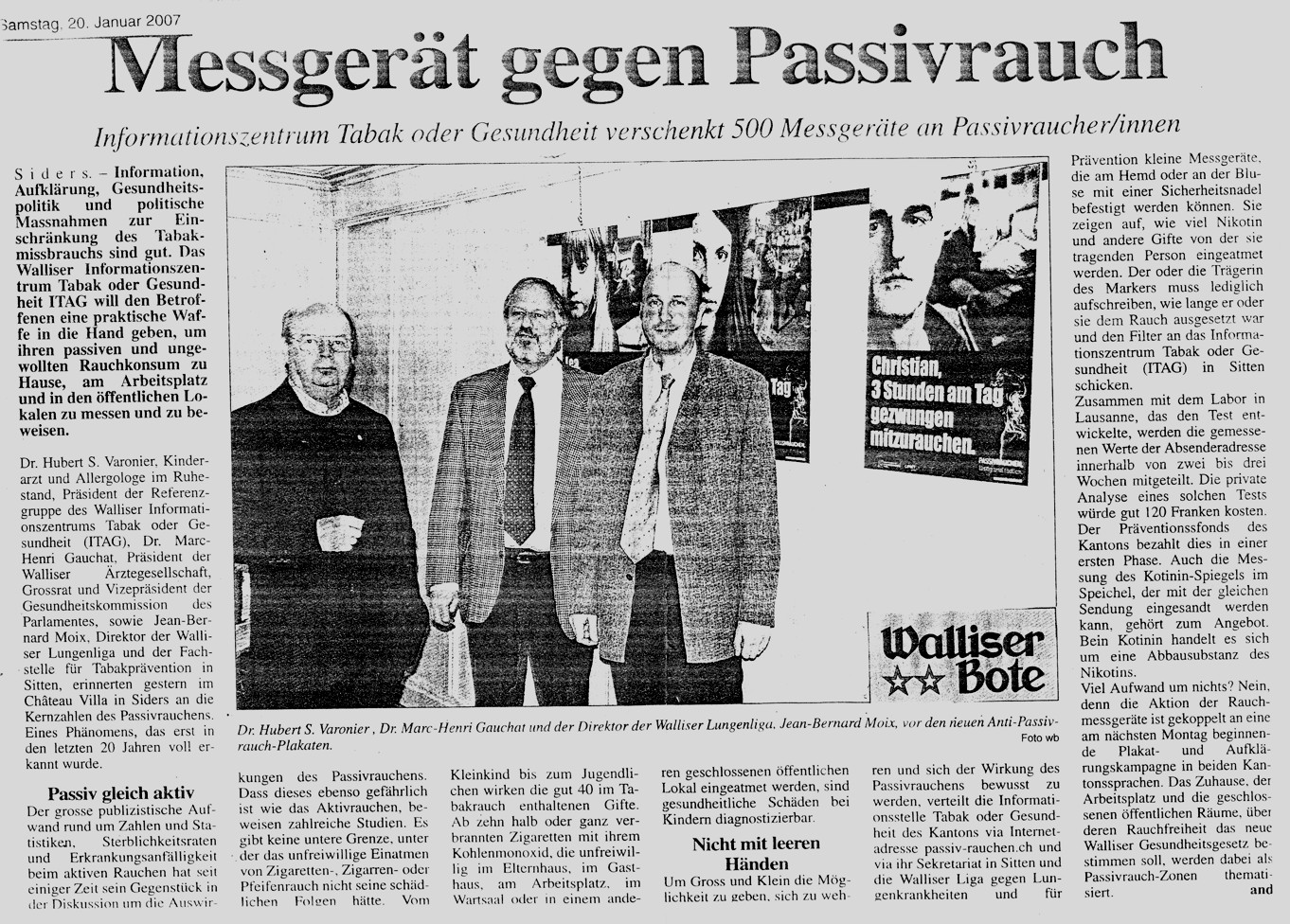 Walliser Bote Samstag, 20. Januar 2007