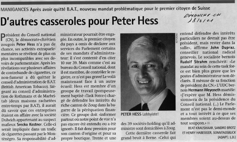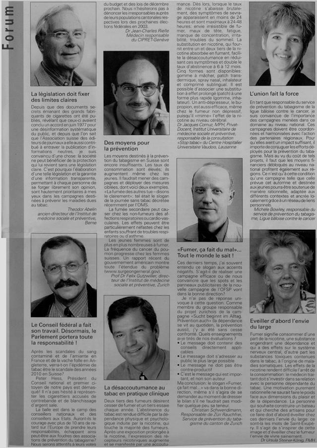- la Commission fédérale pour la prévention du tabagisme, qui déplore que Monsieur Kaspar Villiger, au nom du Conseil fédéral, persiste à penser que notre pays doit rester attractif pour l’industrie du tabac ;