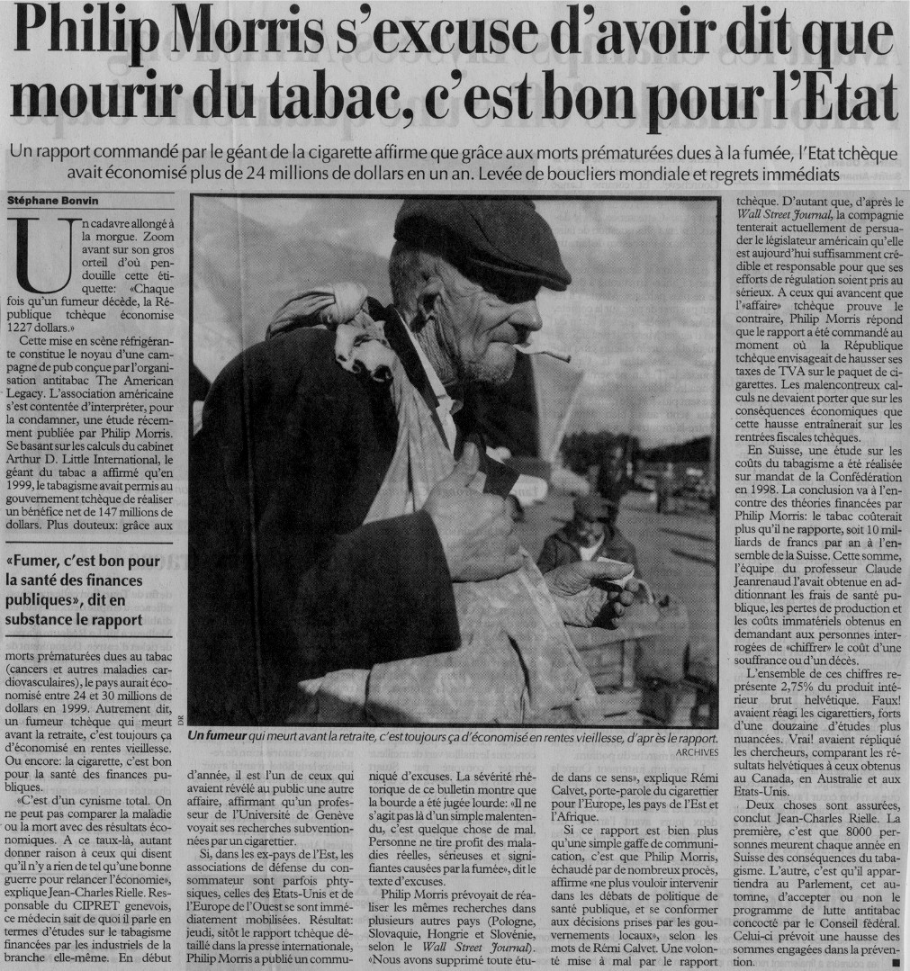 Paru sur le site sudédois de Tobaksfakta le 27 mai 2003