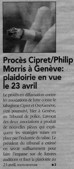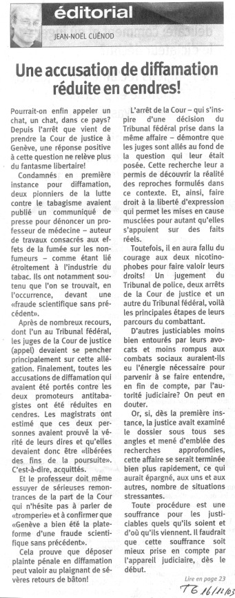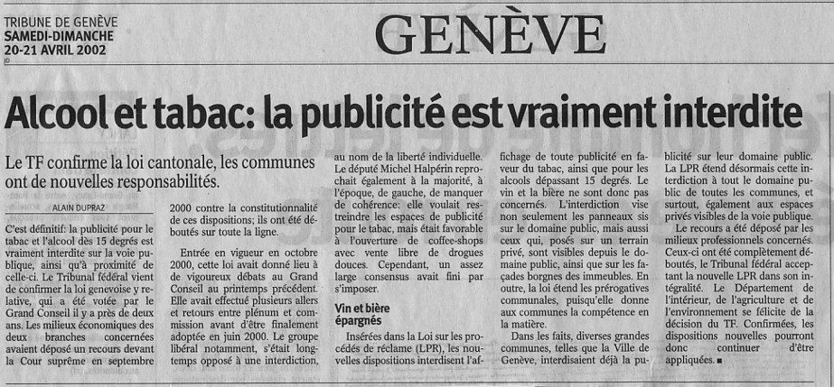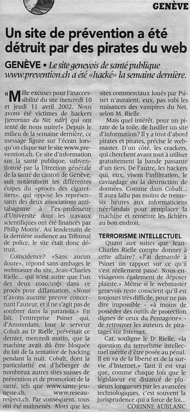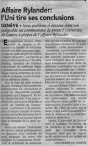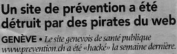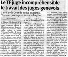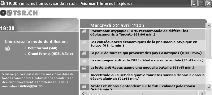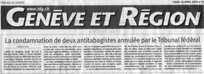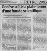 Radio Suisse Romande (RSR1 - 27 mai 2003) et Léman Bleu Télévision (Journal du 26 mai 2003)