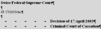 Décision du 17 avril 2003 de la Cour de cassation pénale du Tribunal