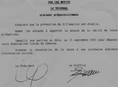 Le verdict sera rendu vendredi 24 mai 2002, à 9h, en audience publique.