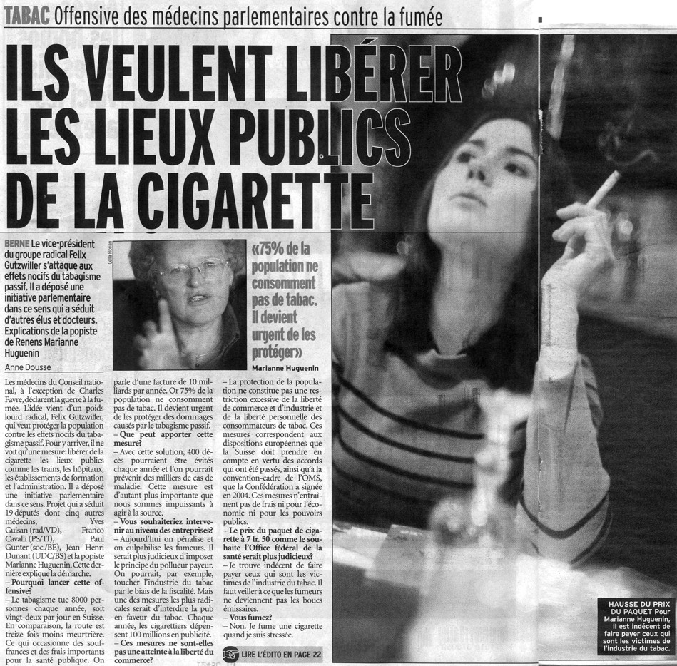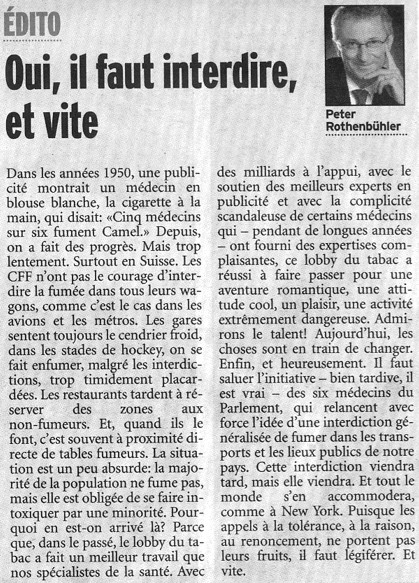 Il serait pas étonnant de constater que la prise de conscience dans le domaine de la prévention du tabagisme en Suisse