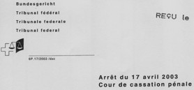 pénale du 17 avril 2003, communiqués aux parties le 26 mai 2003