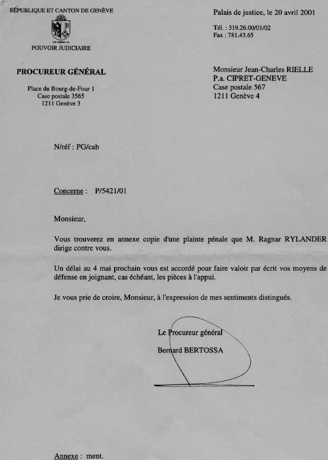 document Document Document La page du rapport suisse qui concerne M. Rylander La note 57 de cette page Rapport complet Document Document |