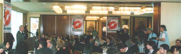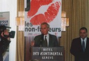 Affiches - panneaux-bus - tram! La Réception à l'Hôtel Intercontinental! 10 pleines pages couleurs dans les quotidiens! Et les déclarations-choc de personnalités! Presse (non-exhaustive) Les cigarettiers "dérapent"! En menaçant le ministre genevois de la santé et le directeur de l'Office fédéral de la santé publique, ils montrent leur vrai visage! Communiqué de Presse du lundi 19 octobre 1998 Quelques considérations scientifiques et éthiques! Des sites à visiter! Le sponsoring sportif et culturel de Carrefour Prévention®! |