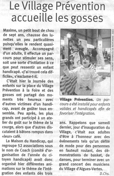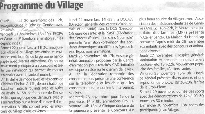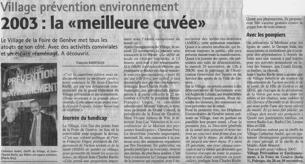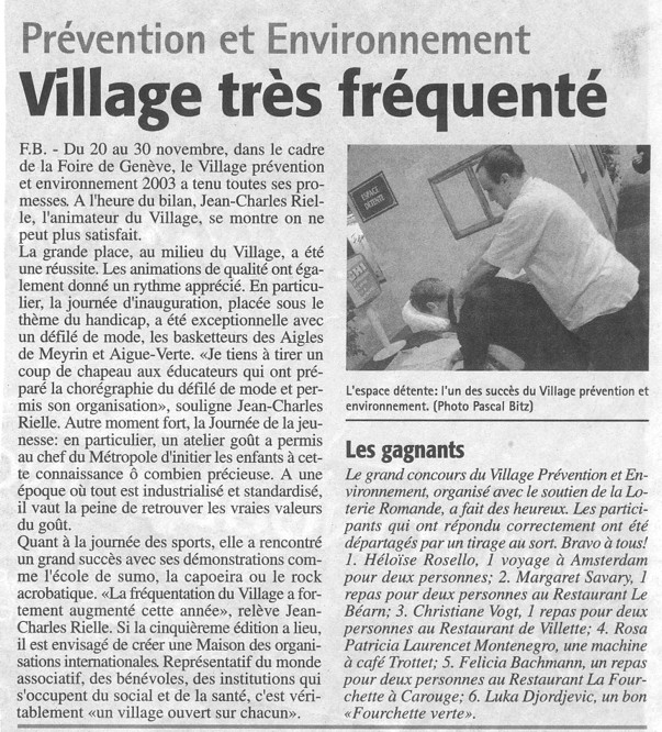 Nous contacter jcrielle@iprolink.ch Retour Homepage Village Prévention et Environnement 2003